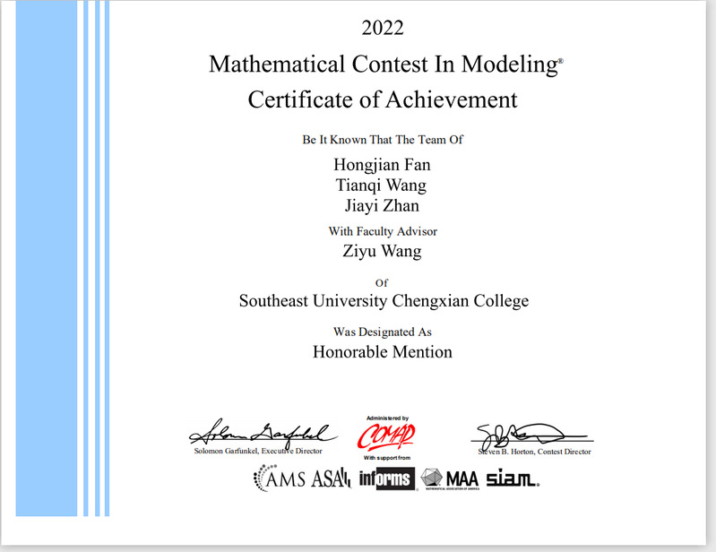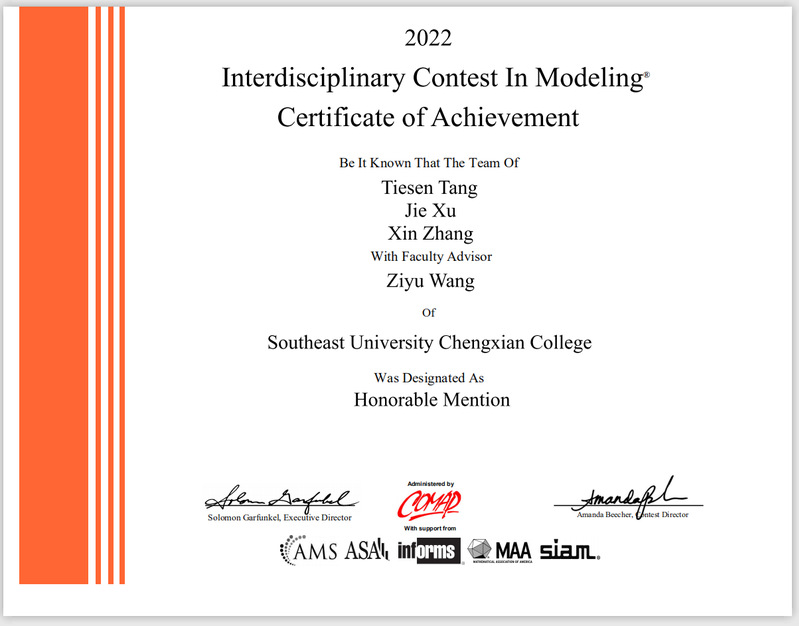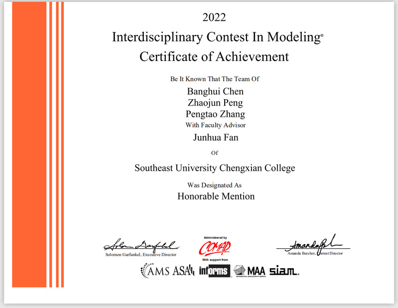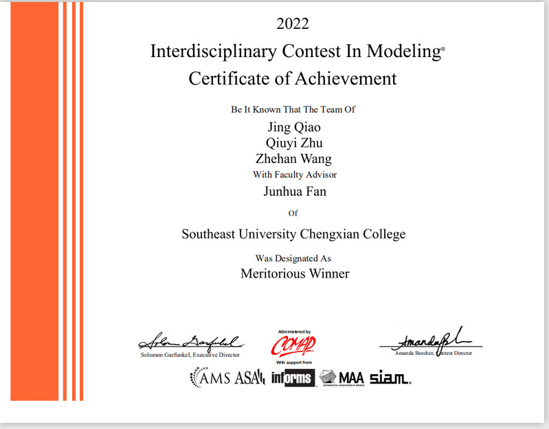 电计学子在2022年美国老员工数学建模竞赛中再创佳绩