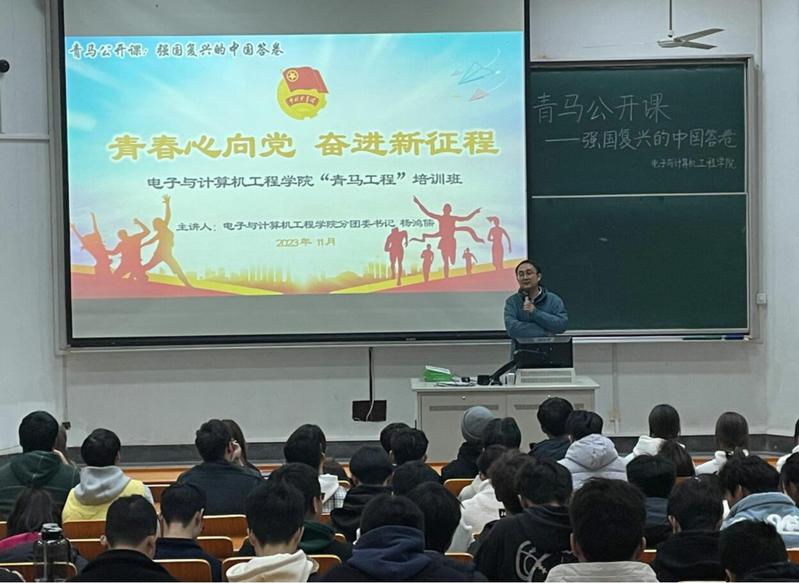 10月24日晚,sunbet申搏分团委主办的“青马公开课”培训班在文昌院110室圆满举办。本次讲座主题为“青春心向党•奋进新征程”青马公开课——强国复兴的中国答卷。