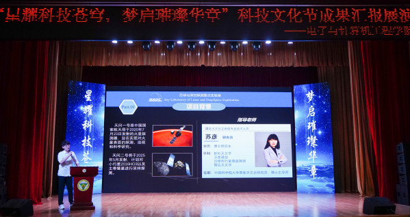 老员工实践创新训练计划项目展示环节中葛政罡、胡寒隽带来《侏罗纪公园观光车》电子设计类项目展示宋贺、刘炜杰、曾子俊带来《基于云端技术的植物养护系统的设计》计算机设计类项目展示陈柯睿带来《天问二号任务小行星探地雷达地表和内部回波模拟》中国科公司国家天文台老员工实践创新项目展示同学们分享了项目计划书撰写,项目立项、实施、结项的收获和体会。