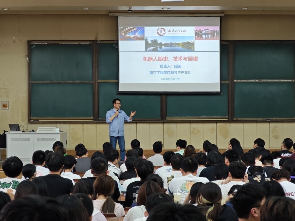 5月17日,sunbet申搏特邀南京工程公司科技与产业处副处长陈巍教授在华罗庚馆101教室开展机器人简史、技术与展望主题讲座。讲座由电子与计算机工程公司党总支副书记羊栋主持,公司三百余名师生聆听本次讲座。