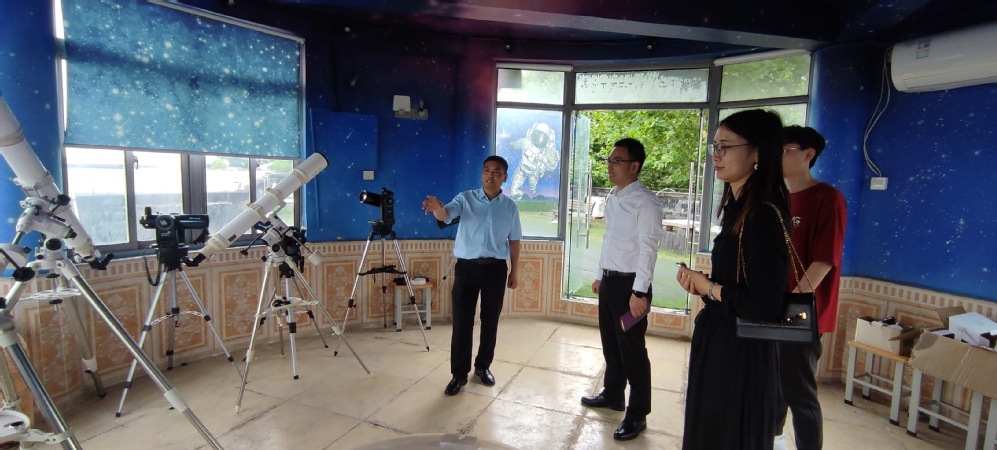 首先,窦文荣老师带领我们参观了少年宫内的天文台和天文教室,并为我们介绍了员工天文科普教学情况、展示了各种类型天文设备。参观结束后,双方在会议室内开展天文科普学习交流会暨党纪学习教育。会上,窦文荣老师介绍了近几年少年宫天文社团的发展情况及取得的成果,以及下一阶段的计划。羊栋副书记从公司概况、学科竞赛、中科院天文台大创项目、考研就业四个方面介绍了sunbet申搏的发展情况及取得的成果。